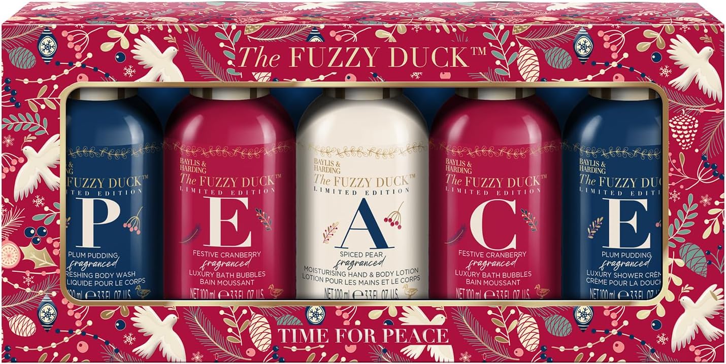 Bring joy and tranquility to someone special this festive season with the Baylis & Harding Fuzzy Duck Winter Wonderland Time For Peace Gift Set, a beautifully curated Christmas gift set in Abuja. This luxurious pamper set is designed to create calm and peaceful moments amidst the hectic December season, combining delightful winter berry scents with high-quality skin care essentials.